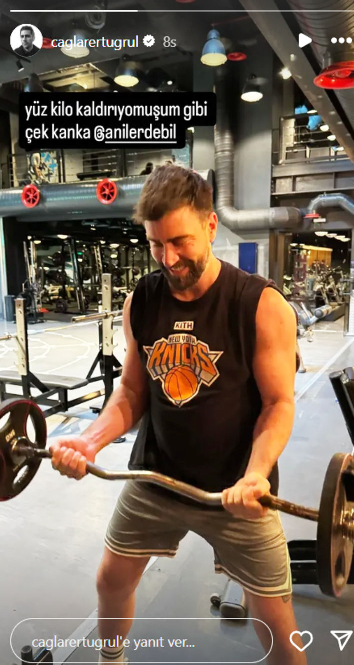 Çağlar Ertuğrul'dan spor paylaşımı: Yüz kilo kaldırıyormuşum gibi çek