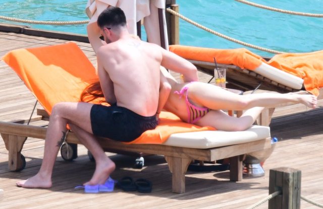 Sevgilisinin ‘Kendine gel’ çıkışı ile sakinleşen Çağlar Ertuğrul, şezlonguna dönerek güneşlenmeye devam etti.
