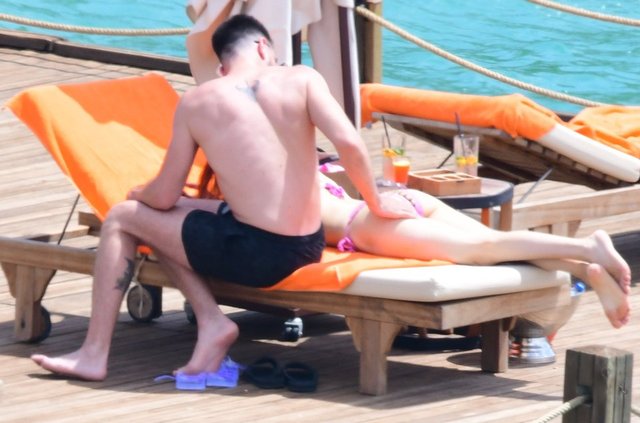 Çift, önceki gün Torba'da konakladıkları otelin iskelesinde görüntülendi.