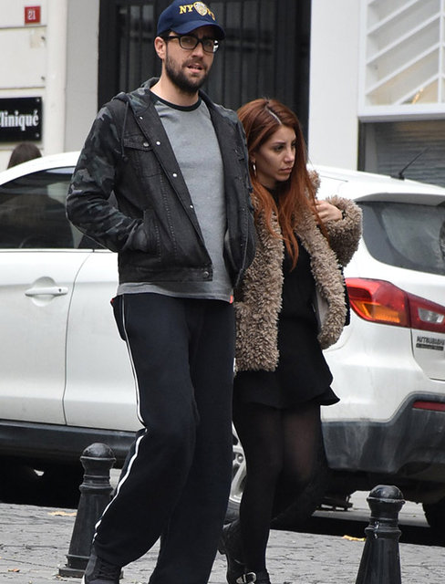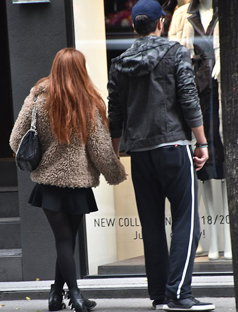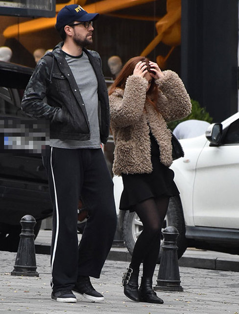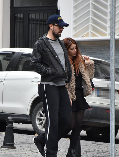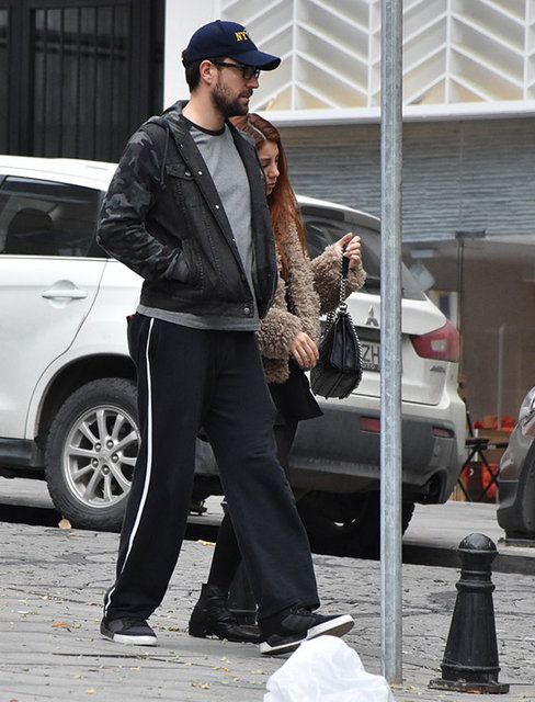 Görüntülendiğinin farkına varan oyuncu, sevgilisinin elini tutarak hızlıca oradan uzaklaştı.