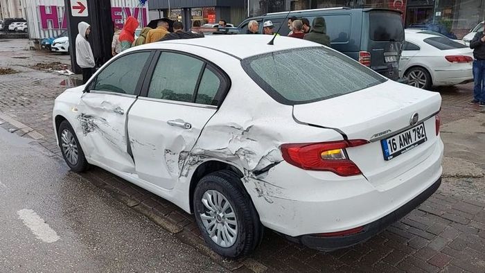 Bursa'da çalıntı minibüsle polis ekiplerinden kaçan zanlı, trafikte seyir hâlindeki 5 araca çarparak durabildi