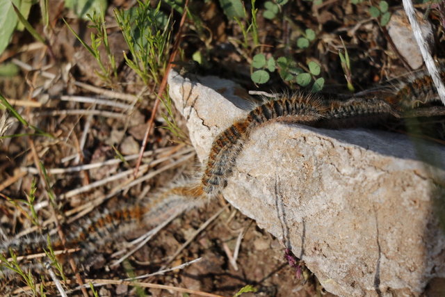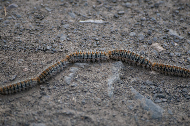 Muğla'da çam kese böceği sürüsünün kelebeğe dönüşmek için sıra halinde yolculuğu, ilginç görüntüler oluşturdu