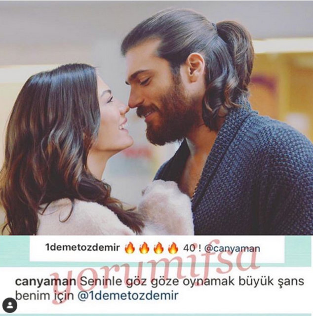 Son olarak, Demet Özdemir dizideki bu görüntülerini alev emojisiyle paylaştı. Can Yaman da fotoğrafın altına, "Seninle göz göze oynamak büyük şans benim için" notunu düştü.