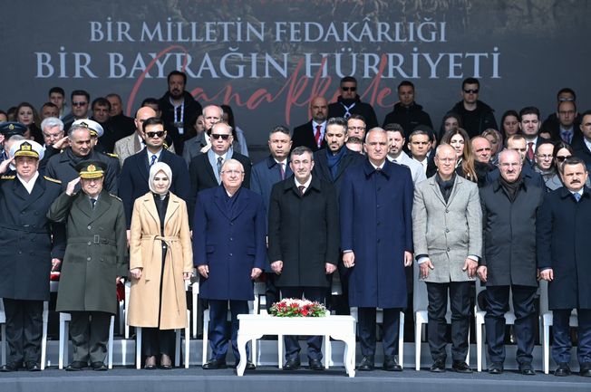 Çanakkale Şehitler Abidesi'nde düzenlenen 18 Mart Şehitleri Anma Töreni, Cumhurbaşkanı Yardımcısı Cevdet Yılmaz ve Kültür ve Turizm Bakanı Mehmet Nuri Ersoy'un katılımıyla gerçekleştirildi. Saygı duruşundan deniz geçişlerine, şehitliklere karanfil bırakılmasından Solo Türk gösterisine kadar birçok anlamlı programın yer aldığı törende, Çanakkale ruhu bir kez daha güçlü şekilde vurgulandı