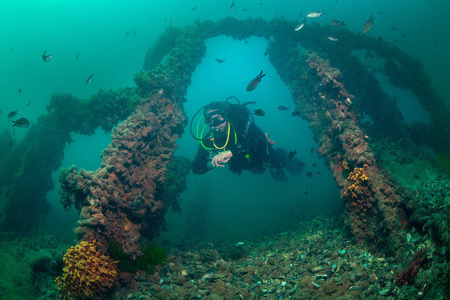 Yük ve asker taşımacılığında kullanılan İngilizlere ve Avustralyalılara ait birer gemi, 25 metre derinlikte adeta doğal bir resifi andırıyor.