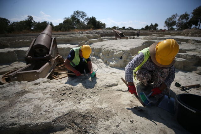 Alan Başkanlığında görevli uzmanlar ve tarihçiler eşliğinde sürdürülen çalışmalarda 109 yıldır toprak altında kalmış tarihi topların çevresi temizlenmeye başlandı.