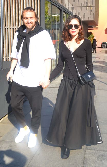 El ele alışveriş turuna devam eden çiftin siyah ve beyaz renkleri ile birbirlerini tamamlamaları ise dikkatlerden kaçmadı.