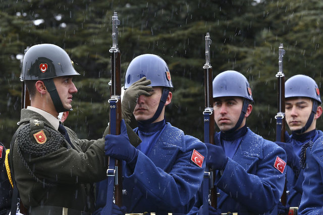 Tören mangasında askerler, son hazırlıklarını böyle yaptı.