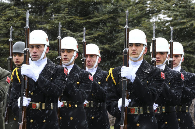 Çankaya Köşkü'nde, kar yağışı altında gerçekleştirilen resmi tören, iki ülke milli marşlarının çalınmasıyla başladı.