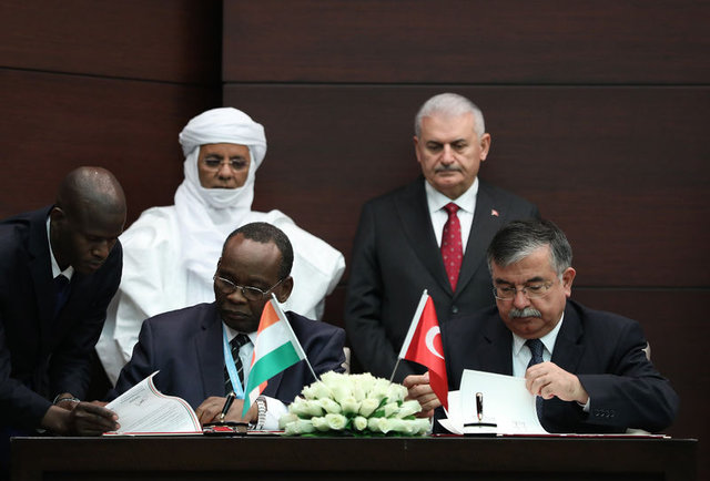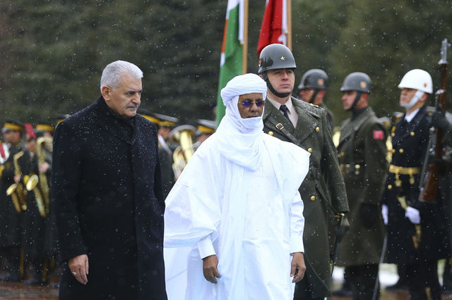 Nijer Başbakanı Rafini, tören kıtasını selamladı. İki ülke heyetlerinin takdiminin ardından Yıldırım ve Rafini tokalaşarak basın mensuplarına poz verdi.