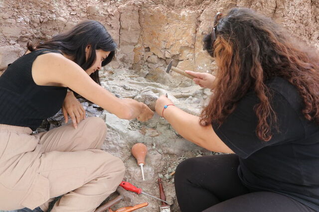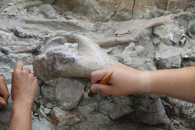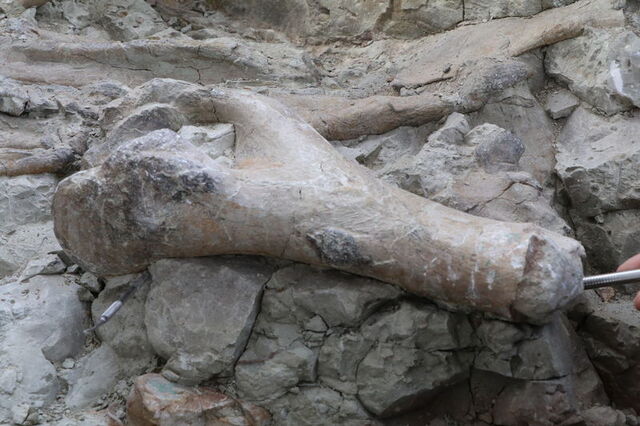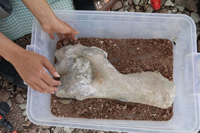 Şimdiye kadar yaptıkları çalışmalar kapsamında bölgede 43 farklı türe ait fosiller bulduklarını hatırlatan Sevim Erol, "Şu anda kazılan alanda bir filin üst kol kemikleri ile ayak kemikleri çıkarılıyor. Daha doğrusu üst kol kemiği çıkarıldı. Bu sene çok sayıda fil iskeletleri bulduk. Çorakyerler'de fillerin atalarına ait iki farklı tür var. Bir tanesi daha iri 'konobelodon' cinsinin bir türü, daha ufak olan diğeri ise 'choerolophodon' cinsine ait ikinci bir tür. Şu anda çıkarılan iri fil türüne ait üst kol kemiği" dedi.