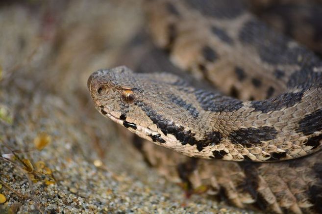 Yılanla ilgili bilgi veren Bozkurt, "Başı üçgen, göz bebekleri dikey, sırtında zikzak şeklinde desen var. Kuyruğu kısa ve küt, vücudu boyuna göre oldukça kalın ve bir metreye kadar büyüyebiliyor. En belirgin özelliği, başın üçgen ve sırtında zikzak şeklinde şeridin olması" diye konuştu.