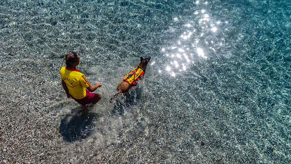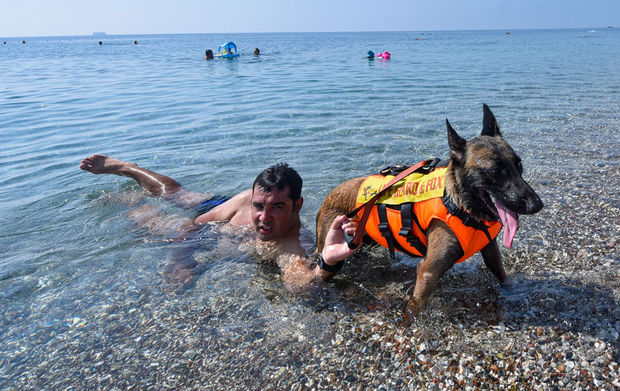 Turizmin başkenti Antalya'da 17 aylık Belçika Malinois cinsi köpek Fox, Konyaaltı sahilinde Cankurtaran olarak insanların yardımına koşmaya başladı.