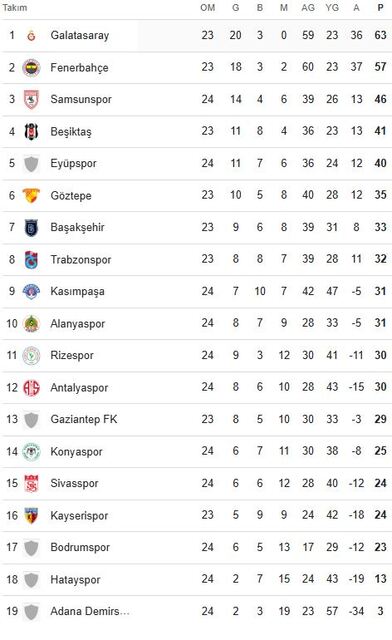 Süper Lig puan durumu: Süper Lig maç sonuçları lig fikstürü ve oluşan puan durumu