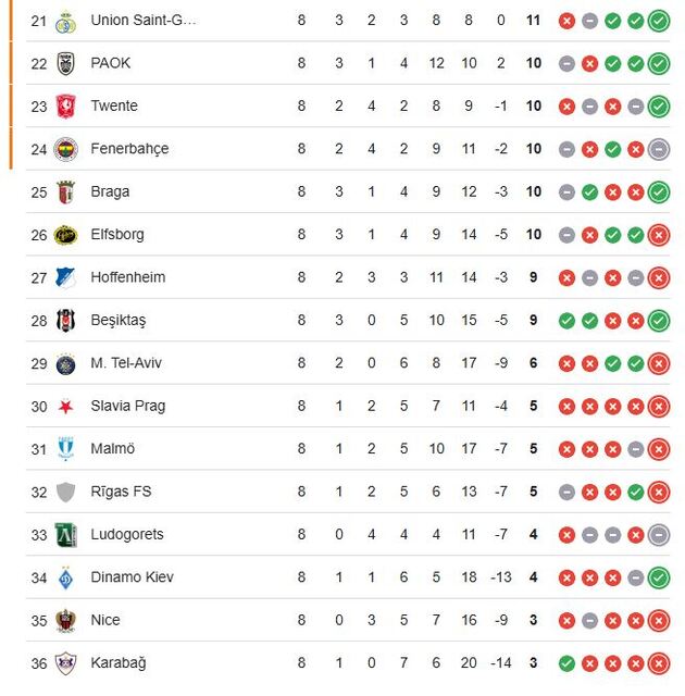 AVRUPA LİGİ'NDE FENERBAHÇE KAÇINCI SIRADA?