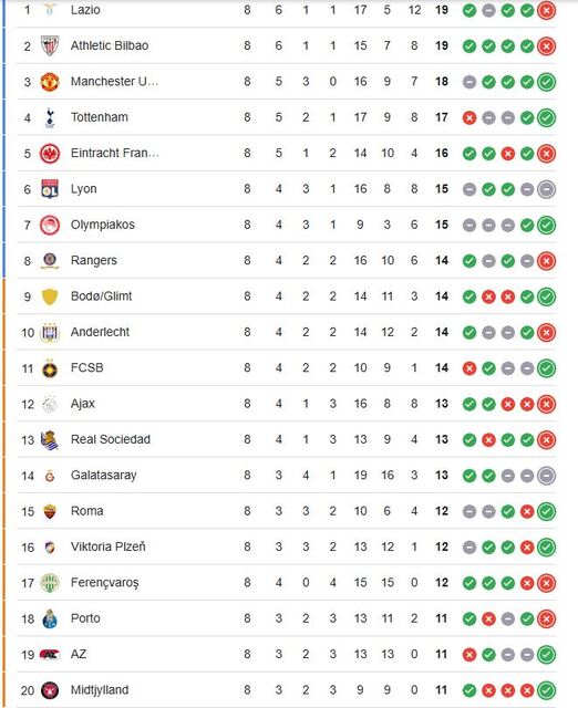 Temsilcilerimiz Fenerbahçe, Galatasaray ve Beşiktaş UEFA Avrupa Ligi'nin 8. ve son hafta maçında kritik maçlara çıktı. Bu kapsamda; Galatasaray Hollanda'da Ajax'la, Beşiktaş Hollanda temsilcisi Twente ile deplasmanda karşılaştı. Fenerbahçe ise Danimarka'da Midtjylland'a konuk oldu. Zorlu mücadeleler sonrasında, temsilcilerimiz Galatasaray, Fenerbahçe ve Beşiktaş'ın Avrupa Ligi'nde kaçıncı olduğu futbolseverler tarafından mercek altına alındı. İşte UEFA Avrupa Ligi Fenerbahçe, Galatasaray ve Beşiktaş'ın topladığı puanlar çerçevesinde puan tablosundaki yeri...