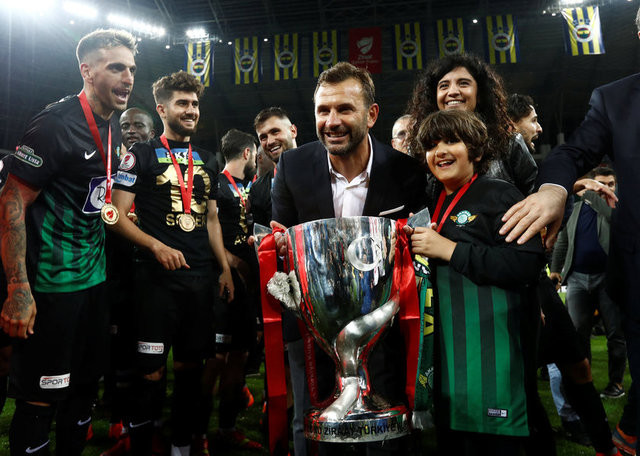 Futbolculuk döneminde Galatasaray ve Beşiktaş formalarıyla 6 kez kupa sevinci yaşayan Teleset Mobilya Akhisarspor Teknik Direktörü Okan Buruk, bu kez teknik direktör olarak kupayı kazandı! Yeşil-siyahlı ekibin kadrosunda bulunan Bilal Kısa ile Olcan Adın daha önce Galatasaray'da kupayı kazanmıştı.
