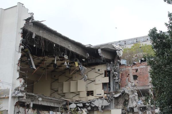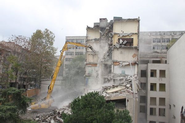 Marmara açıklarında 26 Eylül Perşembe günü saat 13.59'da merkez üssü Marmara Denizi Silivri olan 5.8 büyüklüğünde meydana gelen depremin ardından tahliye kararı verilen İÜ İstanbul Tıp Fakültesindeki (Çapa Yerleşkesi) binalar yıkılıyor.