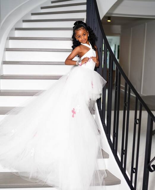 Grammy ödüllü rapçinin kızı Kulture, tül etekli ve upuzun kuyruklu beyaz elbisesiyle poz verdi.