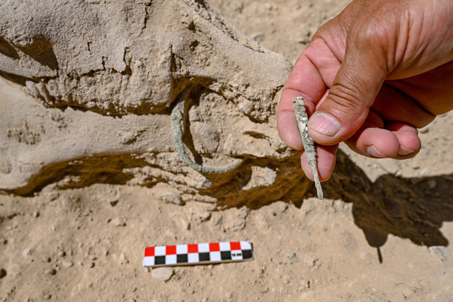 "Bu yıl yaptığımız çalışmalarda her yıl olduğu gibi yeni bir buluntuyla karşılaştık. Bir atın çenesine bırakılmış vaziyette halka şeklinde gem bulduk. Bronzdan üretilmiş.