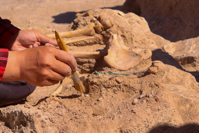 Prof. Dr. Çavuşoğlu, kazı alanında daha önce 4 atı, sığırı ve köpeğiyle gömülen bir mezar tespit ettiklerini anımsattı.