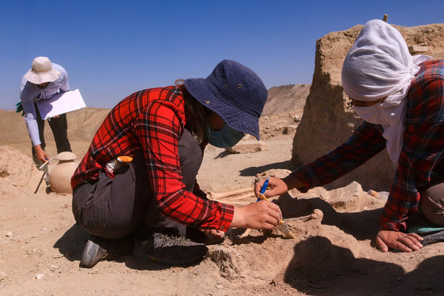 Takılarıyla birlikte gömüldüğünü gördük. Etrafını açtığımızda iskeletin başının olmadığını fark ettik. Başının olmaması dini bir inancın gereği ya da bir ritüelin bir parçası olabilir. Kadının başının daha kutsal bir yere konulmuş olabileceğini tahmin ediyoruz" dedi.