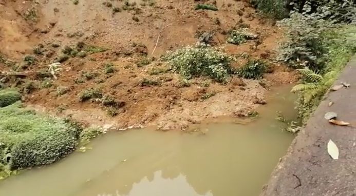 Kıbledağı köyünde şiddetli yağışın ardından yamaçtan kopan toprak birikintisi, kaya parçaları, çay bahçesi ve ağaçları, yol kenarına düştü.