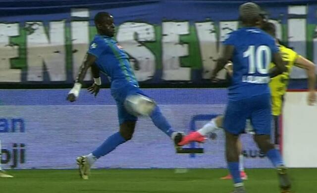 Deniz Çoban: "Net sarı kart. Top kafa seviyesinde. Oyuncunun ayağı göğüs seviyesinde. Kramponun altıyla yukarıdan aşağı tarıyor. Kontrolsüz hareket sarı kart."