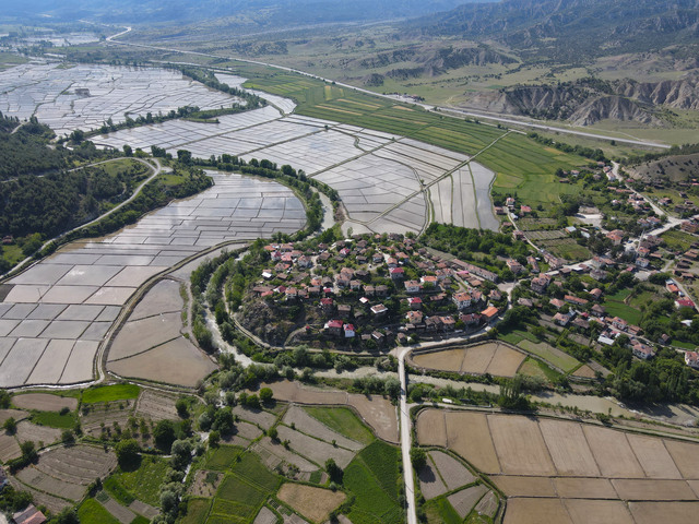 Çeltik tarlaları ilkbaharda köyü yarımadaya dönüştürüyor
