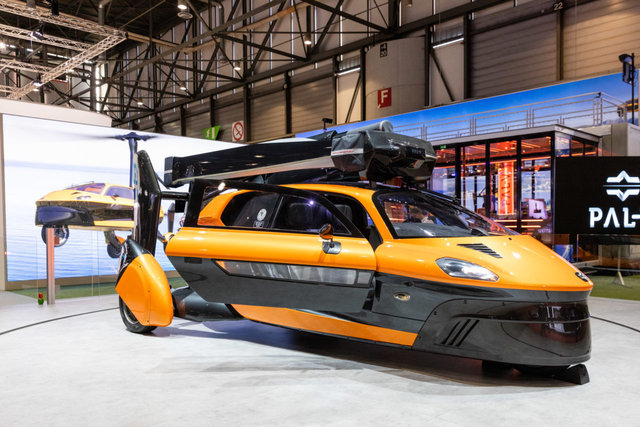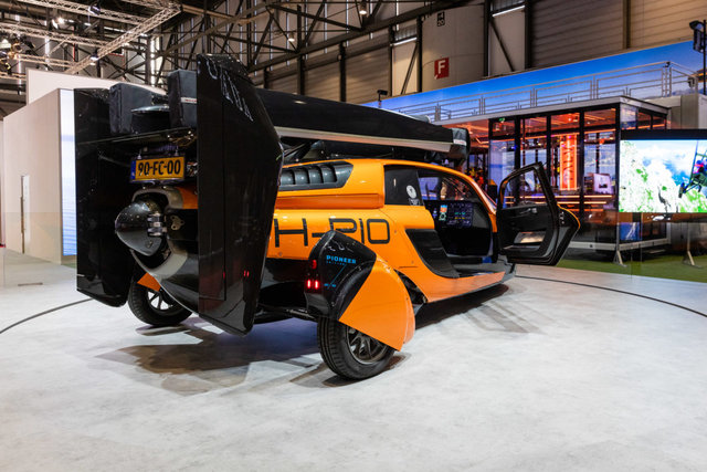 Hollandalı üretici Pal-V, dünyanın ilk seri üretime hazır uçan arabası olan 'Liberty'yi fuarda sergiledi.