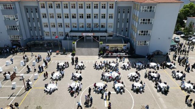 Mezun ve öğrencilerden oluşan yaklaşık 1000 kişinin katıldığı geleneksel pilav günü etkinliğine de iştirak eden Hüseyin Likos ile Cengiz Bozkurt, öğrencilerle bol bol hatıra fotoğrafı çektirdi.