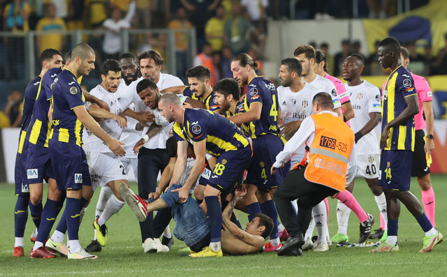 Beşiktaş'ın 3-2 kazandığı müsabakada hakemin bitiş düdüğüyle birlikte orta sahaya koşan B.Ö, havada tekme atarak beşiktaşlı futbolculara saldırdıktan sonra saha bir anda karıştı.