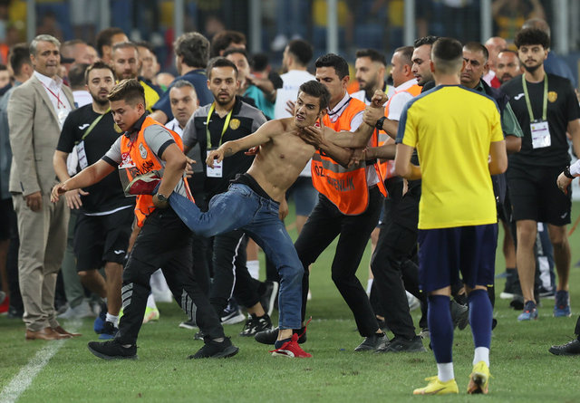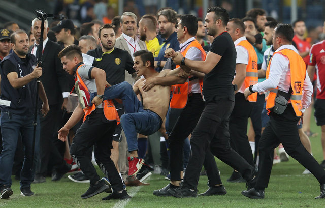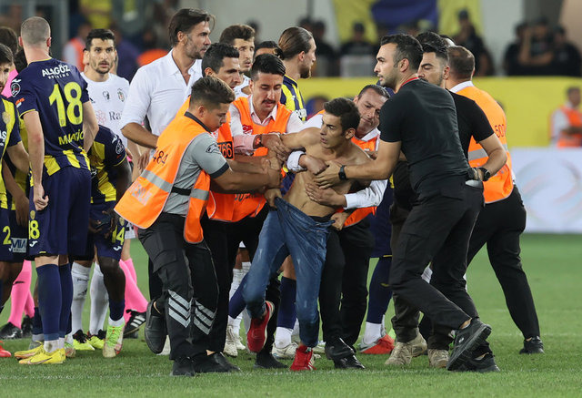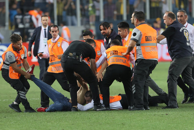 Saldırı ile ilgili Ankara İl Emniyet Müdürlüğü'nden yapılan açıklamada, MKE Ankaragücü ve Beşiktaş maçında kale arkası tribününden saha içerisine atlayarak giren ve Beşiktaşlı futbolculara fiziki saldırıda bulunan B.Ö.'nün gözaltına alınarak hakkında gerekli işlemlerin başlatıldığını bildirildi.