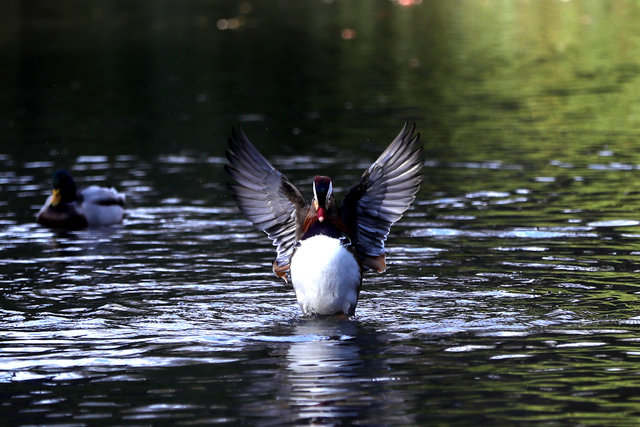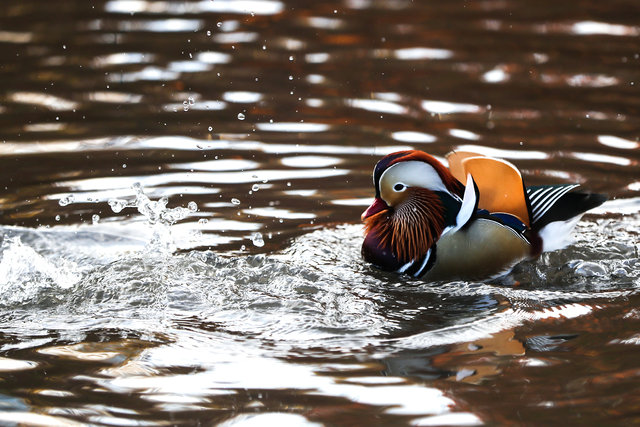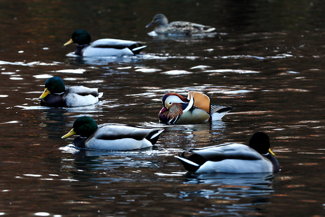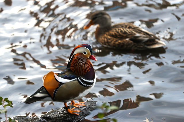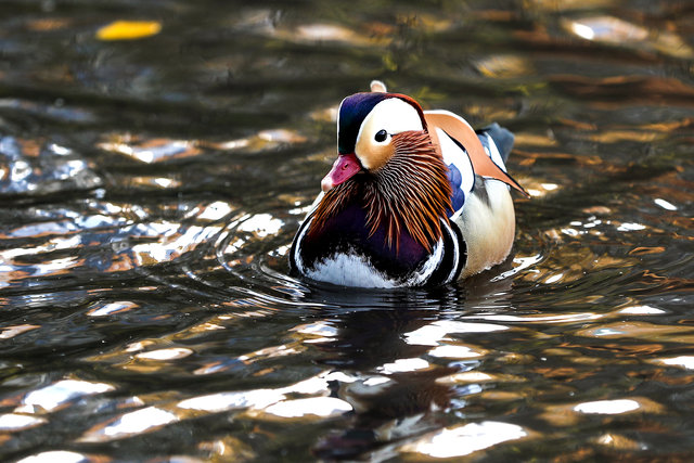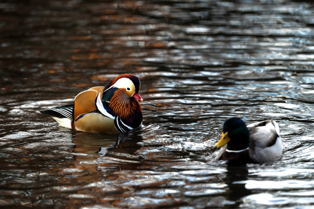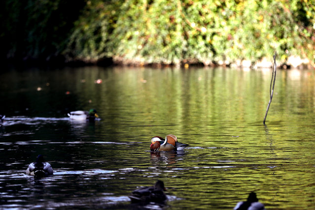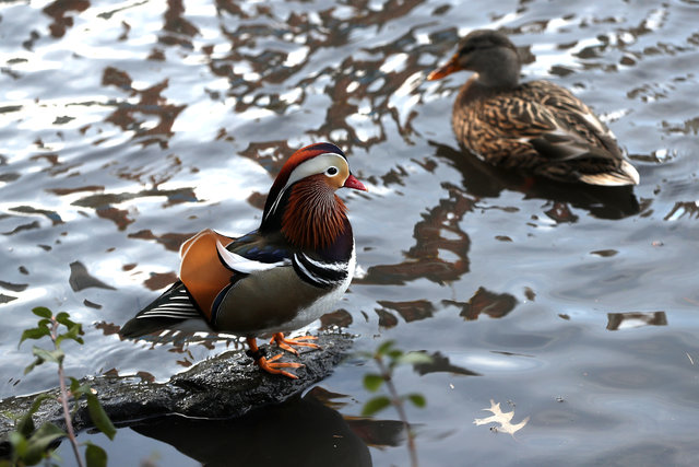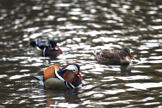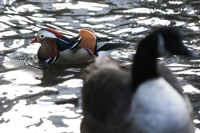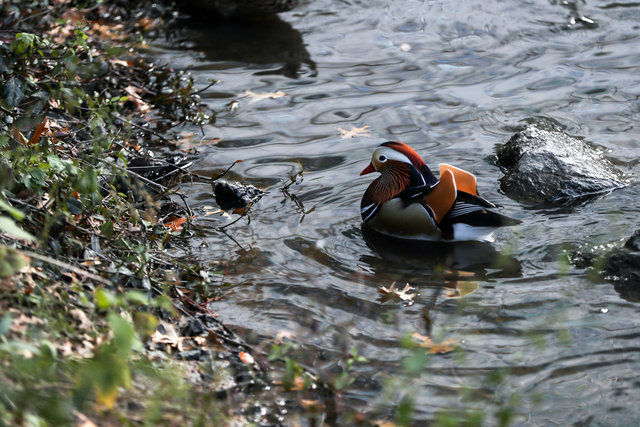 Genellikle Doğu Asya'da görülen bir tür olan Mandarin ördeği New York'ta bulunan Central Park'ta ziyaretçilerin dikkatini çekiyor