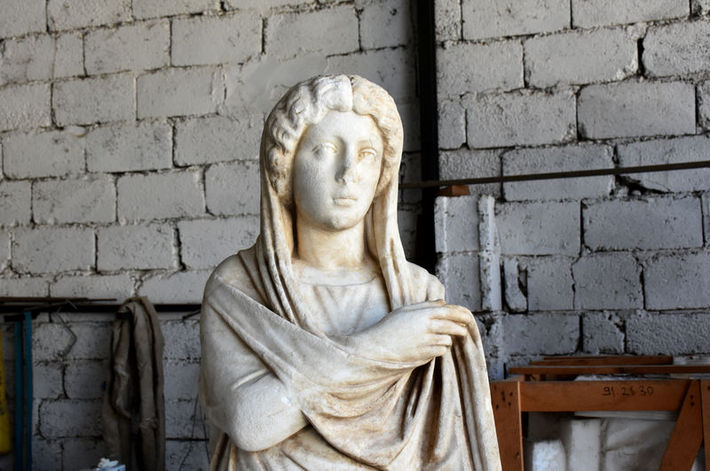 GİYİMLİ KADIN HEYKELİNİN RESTORASYON SÜRECİ GÖRÜNTÜLENDİ