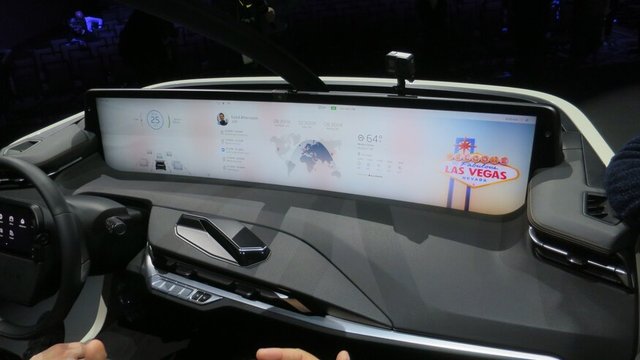 Byton'ın en dikkat çeken özelliklerinden biri de iç mekanı. Otomobilin kokpitinin boydan boya saran bilgi ekranı 48 inch boyutunda.