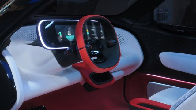 Öyle ki, otomobil, sürücü ile bütünleşiyor ve sürücünün otomobili hissetmesi sağlanıyor. Bu kapsamda, otomobili yönlendirmek için bir direksiyon simidi bulunmuyor.