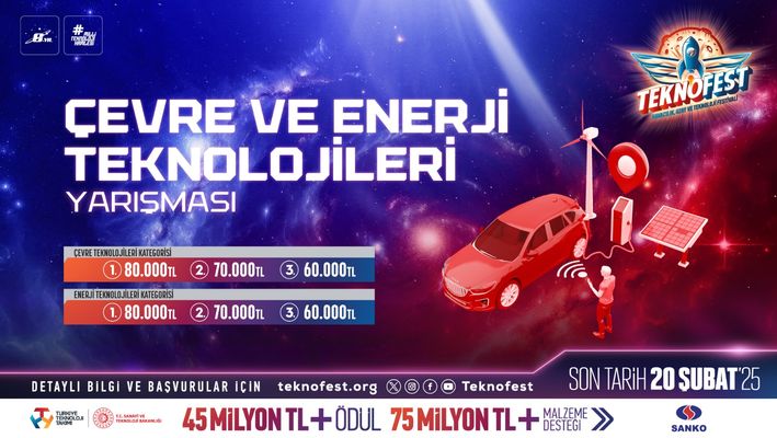 TEKNOFEST Teknoloji Yarışmaları kapsamında SANKO yürütücülüğünde düzenlenen Çevre ve Enerji Teknolojileri Yarışması'nda gençler dünyanın geleceği için çalışıyor. Yenilenebilir enerji kaynaklarının kullanımı ve çevreye duyarlı uygulamalar konusunda farkındalığı artıracak yarışma için son başvuru tarihi 20 Şubat