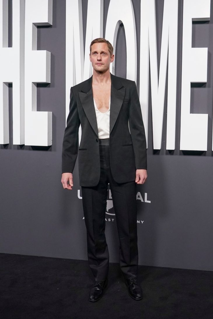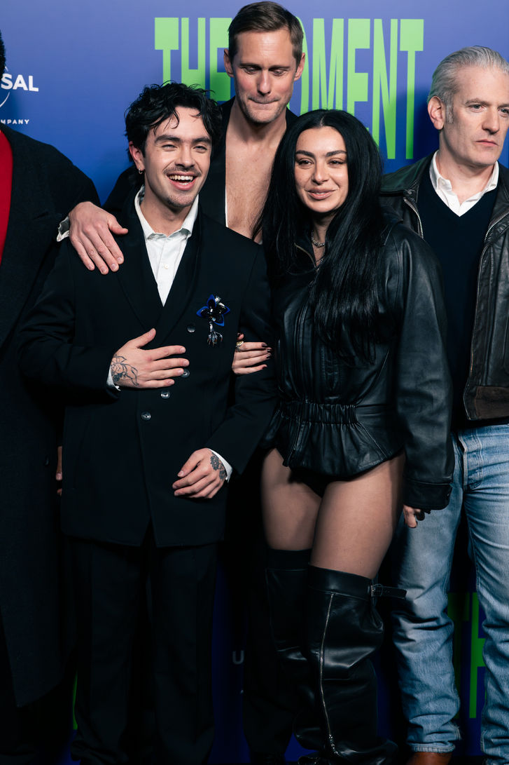 Charli, siyah deri ceketinin altına giydiği külot şeklindeki şortlu kombiniyle dikkatleri üzerine çekerken; Alexander Skarsgard, takım elbisenin içine giydiği, göğüs bölgesini açıkta bırakan beyaz saten bir bluzuyla ilginç bir kombin seçmişti.