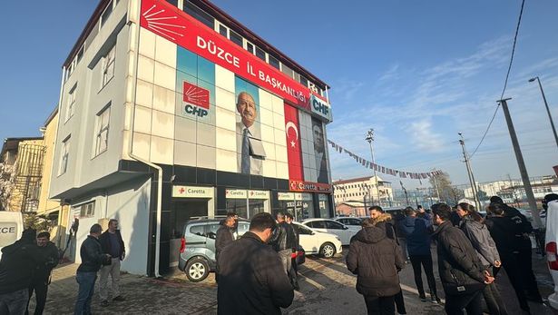 CHP Düzce Milletvekili Talih Özcan'ın ilçe belediye başkan adayı tanıtım toplantısında yaptığı konuşmaya tepki gösteren Yığılcalılar, partinin il başkanlığı binası önüne siyah çelenk bıraktı.