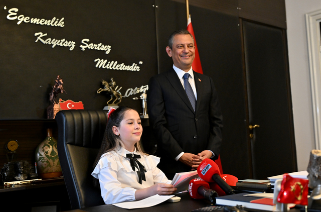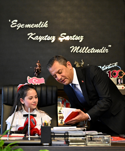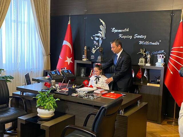 CHP Genel Başkanı Özgür Özel, 23 Nisan Ulusal Egemenlik ve Çocuk Bayramı dolayısıyla Meclis'teki koltuğunu 5. sınıf öğrencisi Dora Mimaroğlu'na devretti. Özel, "İsterseniz sırtınızı dayayın. Bu koltuktan iyice yerleşmezsen kaldırabilirler." diye konuştu. Minik keman sanatçısı Dora da, her çocuğun içindeki cevherin keşfedilmesi için eğitim seferberliği başlatılmasını istedi.