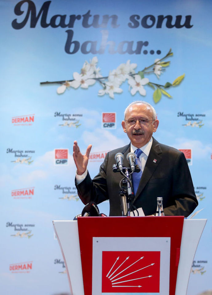 Kemal Kılıçdaroğlu, "Biz bir yola çıktık, çıktığımız yol hak yoludur. Hakkı savunma, adaleti savunma yoludur. Birlikte yaşama yoludur. Hiç kimseyi ötekileştirmeme yoludur. Ekonomik kriz var diyoruz, nasıl çözüleceğini de biliyoruz. Çıkıp şunu diyebilirlerdi,13 madde açıkladın ama üç madde eksik diyebilirlerdi. Şunlar lüzumsuz diyebilirlerdi. Ama biz 13 madde açıkladık, vay sen bunu nasıl açıklarsın? Yahu niye açıklamayayım? Bir sorun varsa çare bulmak hepimizin görevi. Siyasetçinin de görevi. Ufkun bittiği yerde durağanlık başlar. Hedeflerin bittiği yerde gerileme başlar. Bizim ufkumuz Mustafa Kemal Atatürk'ün gösterdiği ufuktur, çağdaş uygarlık düzeyine bu ülkeyi taşımaktır. Bizim ülkemiz cennet gibi. Her şeyimiz var ya. Deniz deseniz en güzel deniz, dağlar deseniz en güzel dağlar, yaylalar deseniz en güzel yaylalar. Peki bu cennet gibi ülkeyi niye cehenneme çevirdik? İnsanlar sokakta birbirlerine selam veremez hale geldi. A partisi B partisi kavga edelim. Ya niye kavga edelim? Hizmet yarışı varsa ben de açıklarım sen de açıklarsın. Siyaset kavga alanı değil ki. Vatandaş neredeyse sokakta, kahvede birbirini boğazlayacak. Bundan da memnuniyet duyuyorlar. Yunus Emre'yi unutmak, Mevlana'yı, Erzurumlu Emrah'ı unutmak mümkün mü? Bize bunları unutturdular. Kavga edeceğiz, niye kavga edelim? Aklımızı kullanarak sandığa gideceğiz, ayın 31'inde yeni bir başlangıcı Türkiye'nin huzuruna getireceğiz. Ben size bunun sözünü veriyorum" diye konuştu.