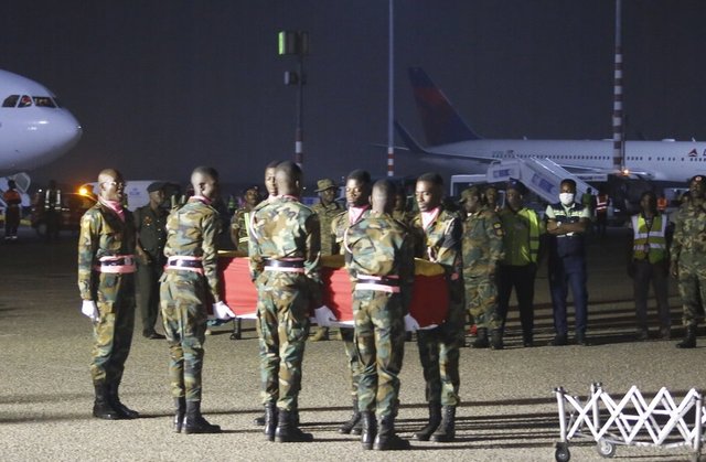 Ordu tarafından uçağın kargo bölümünden çıkarılan ve ulusal bayrağa sarılı tabutun taşınması esnasında dualar edilirken vatandaşlar duygularına hakim olamadı.
