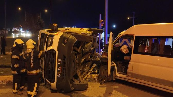 Alınan bilgiye göre, Pınarkent Mahallesi Cafer Sadık Abalıoğlu Bulvarı'nda, Sacit Tozlutepe idaresindeki 20 S 0110 plakalı, tekstil işçisi taşıyan servis minibüsü, kavşaktan dönmeye çalışan Sultaniye Kaplan yönetimindeki 20 DC 112 plakalı ambulansla çarpıştı.