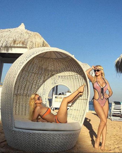 Alaçatı sokaklarında birbirlerini yerde sürükleyen Esra - Ceyda Ersoy kardeşler birlikte denize girerken görüntülendi