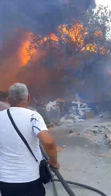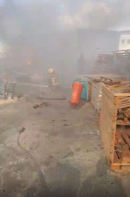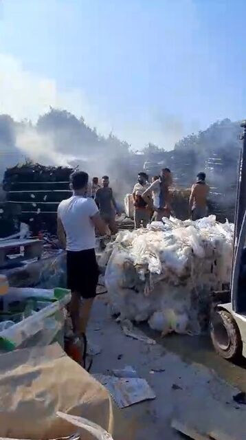 İtfaiye ekipleri, yangının çevredeki fabrika ve iş yerlerine sıçramaması için çalışmalarını sürdürüyor.