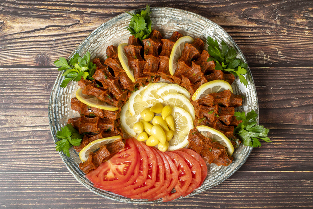 Şekil verme işlemi ardından çiğ köftenizi servise hazırlayabilirsiniz. Servis sırasında marul, limon, maydanoz, nar ekşisi kullanabilirsiniz. Aynı zamanda çiğ köftenizi lavaş arasına koyarak dürüm şeklinde tüketebilirsiniz.