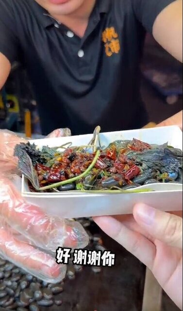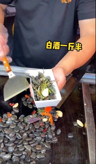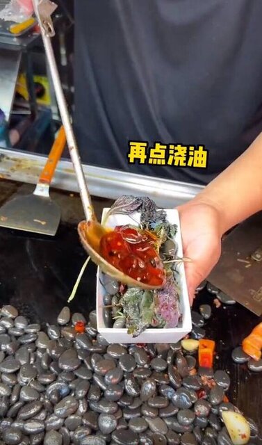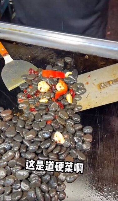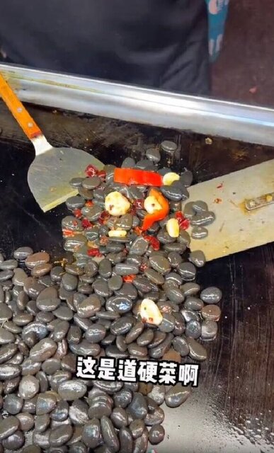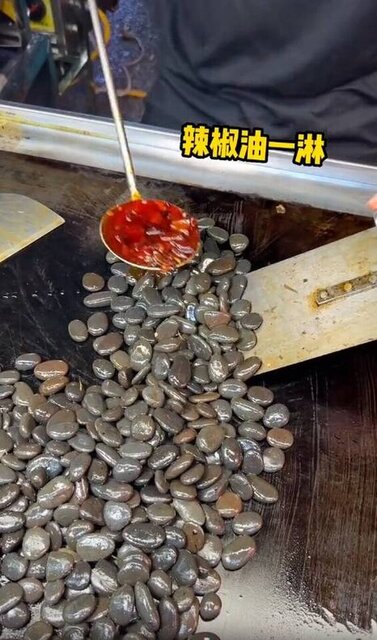 Videolarda sokak satıcılarının bu sıra dışı yemeği nasıl hazırladıkları da gösterildi. Paylaşımlara göre satıcılar tavada cızırdayan çakıl taşlarının üzerine acı biber yağı döküyor.