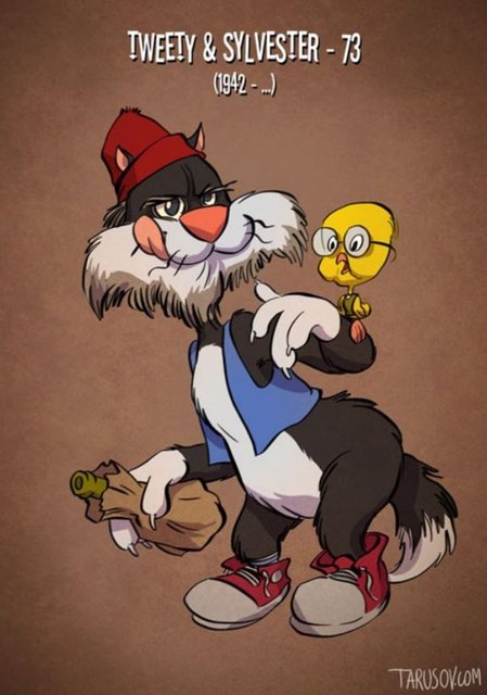 Çocukluğumuzun sevilen çizgi film kahramanlarının yaşlı halini çizen Andrew Tarusov, zamanın ne kadar çabuk geçtiğini bir kez daha sorgulatıyor.