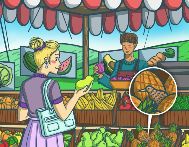 1. soru: Meyve tezgahındaki gizlenen kuşu bulabilir misiniz?